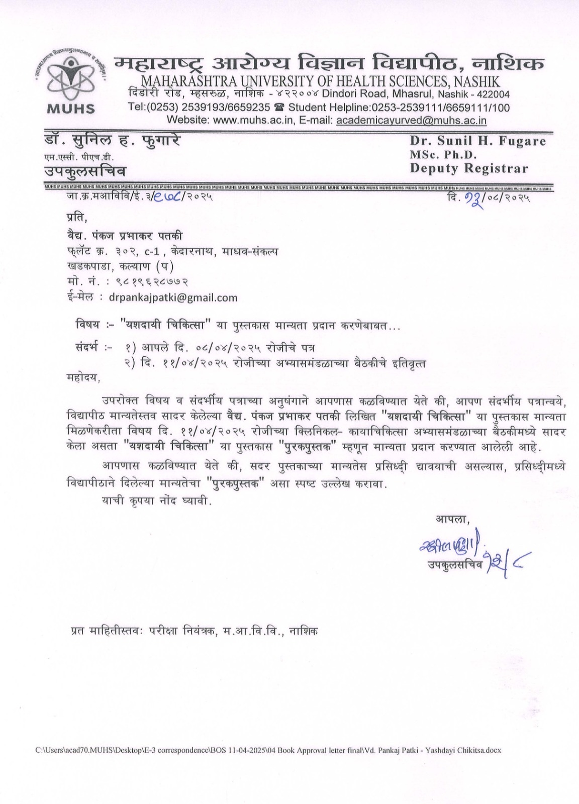 Approved by MUHS Nashik
